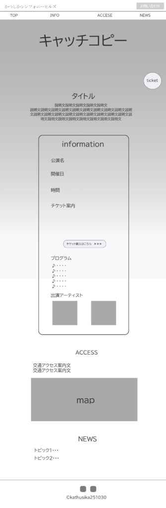 白黒のワイヤーフレームを作成し5限目までにWordPressにUPしてください。